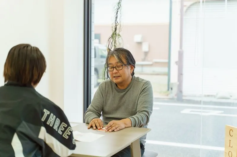 電話やオンラインだけでは伝わりにくいこともあるため、対面でのご相談を基本としております。実際にお会いしてお話を伺うことで、ご利用者様やご家族様の表情や声のトーンから本当のお気持ちを汲み取るよう努めております。落ち着いた雰囲気にこだわった相談スペースを設けており、周囲を気にせずゆっくりとお話しいただける環境を整えておりますので、ぜひご予約の上ご来所ください。